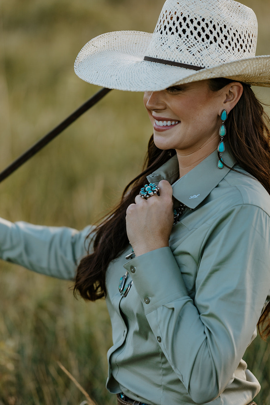 The signature Sage Mint shirt features a tailored fit and refined design, this shirt offers both comfort and style. Perfect for arena wear, it’s also versatile enough for a day out, giving you a sleek look no matter the occasion.